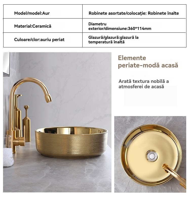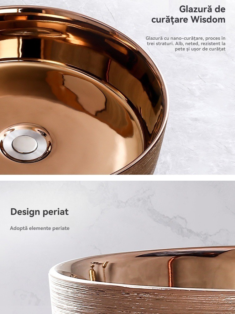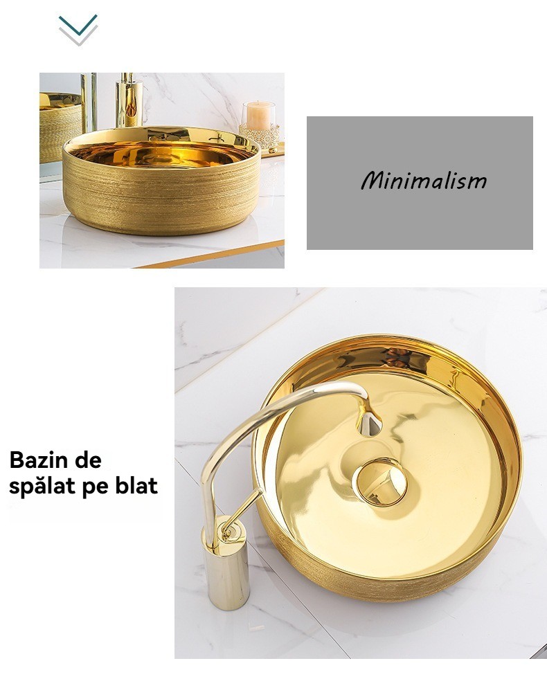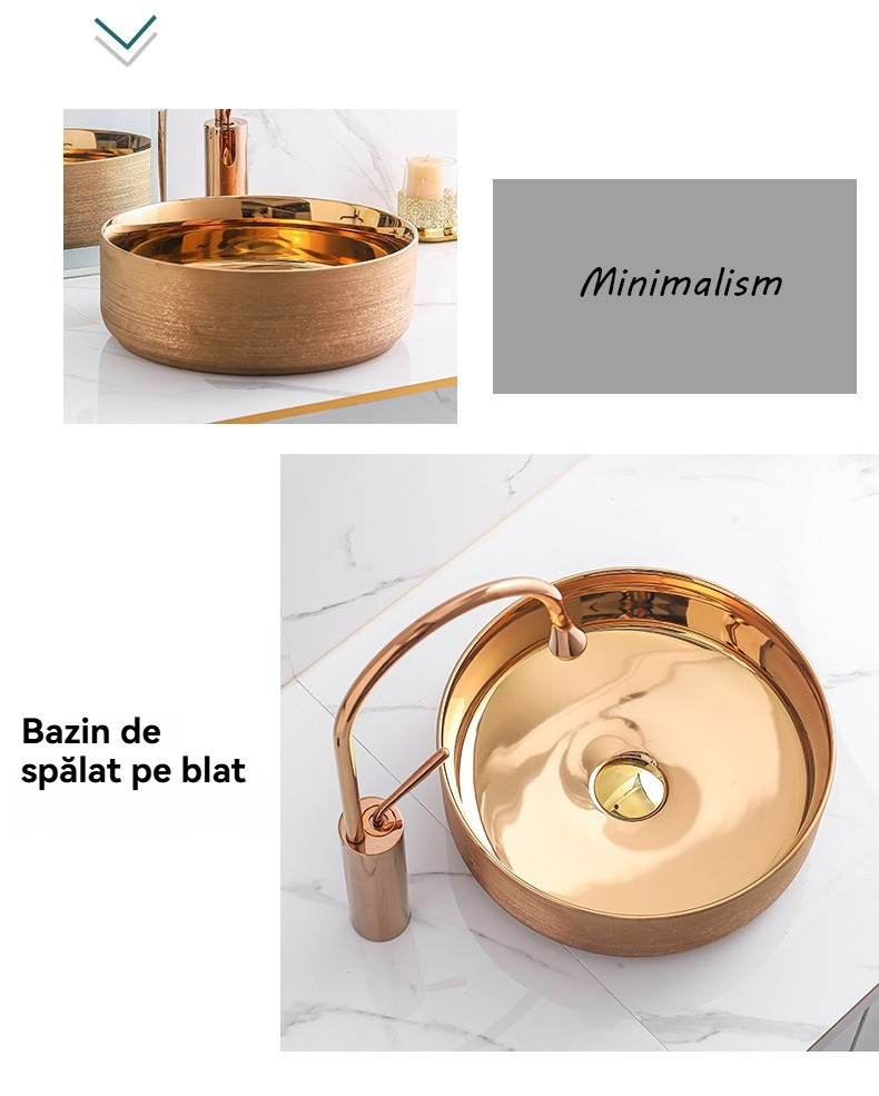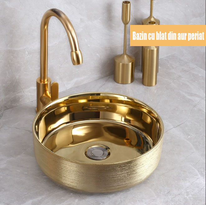 Chiuvetă cu piedestal simplu în culoarea aurului periat