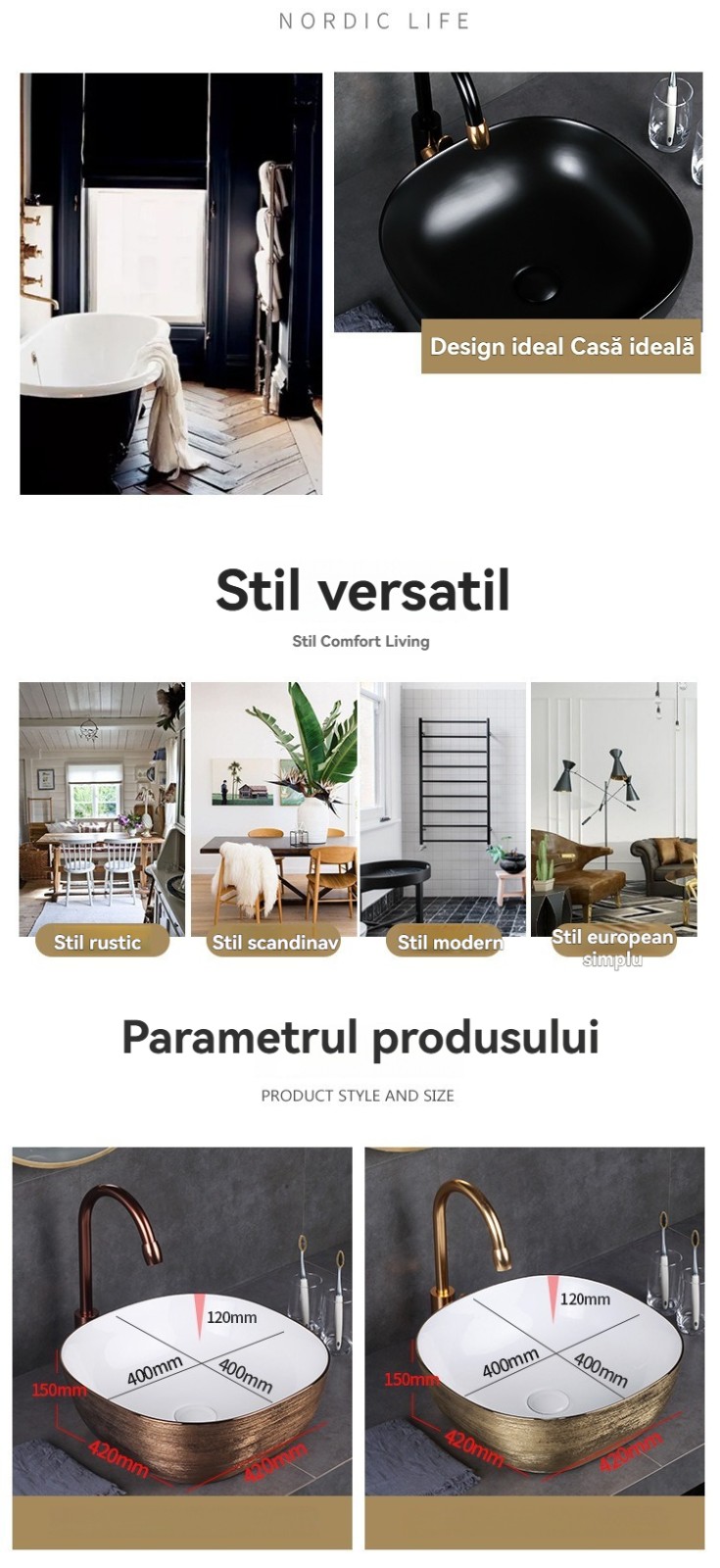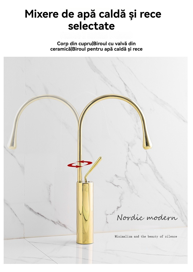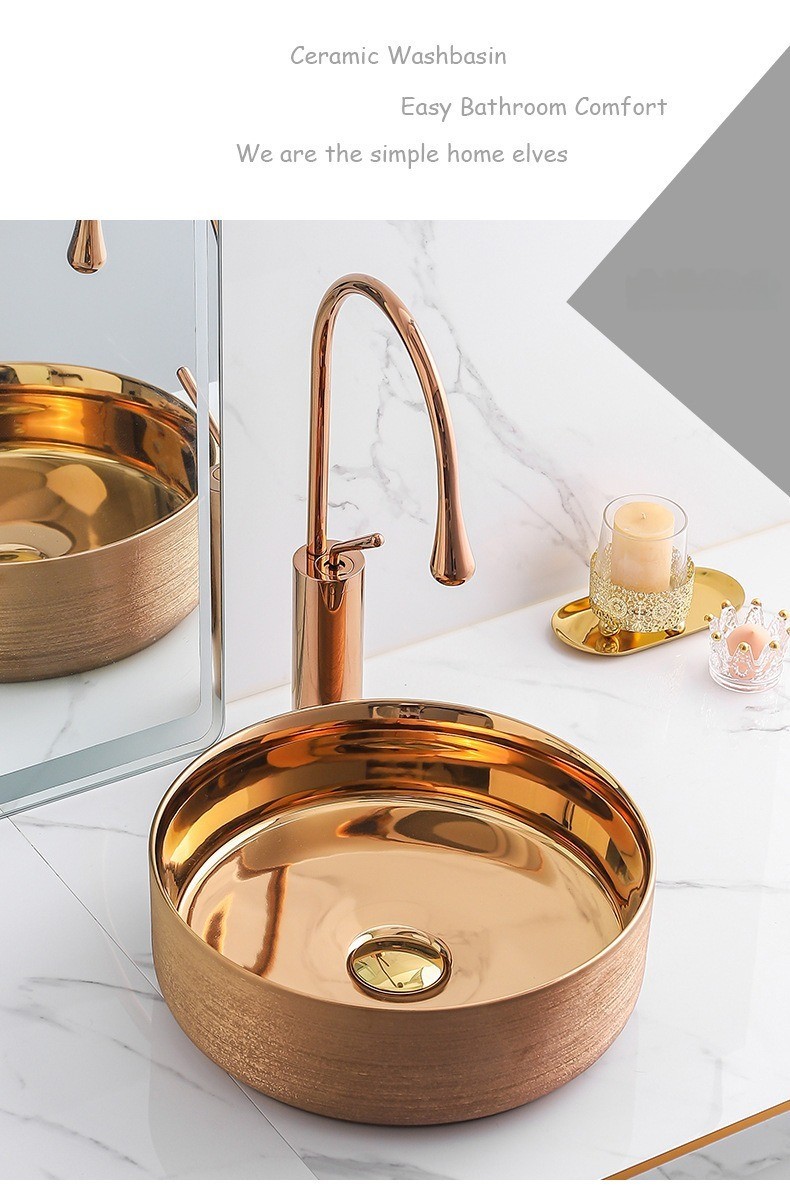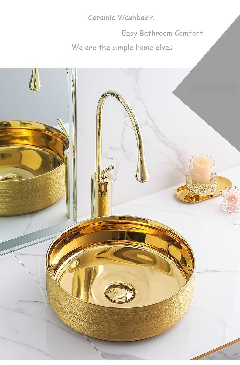 Chiuvetă cu piedestal simplu în culoarea aurului periat